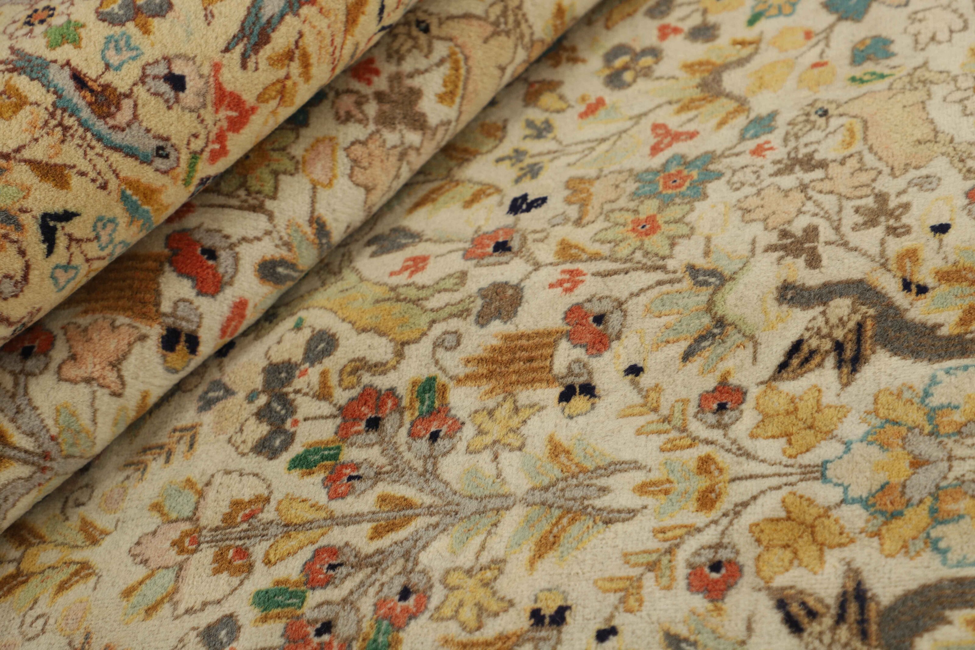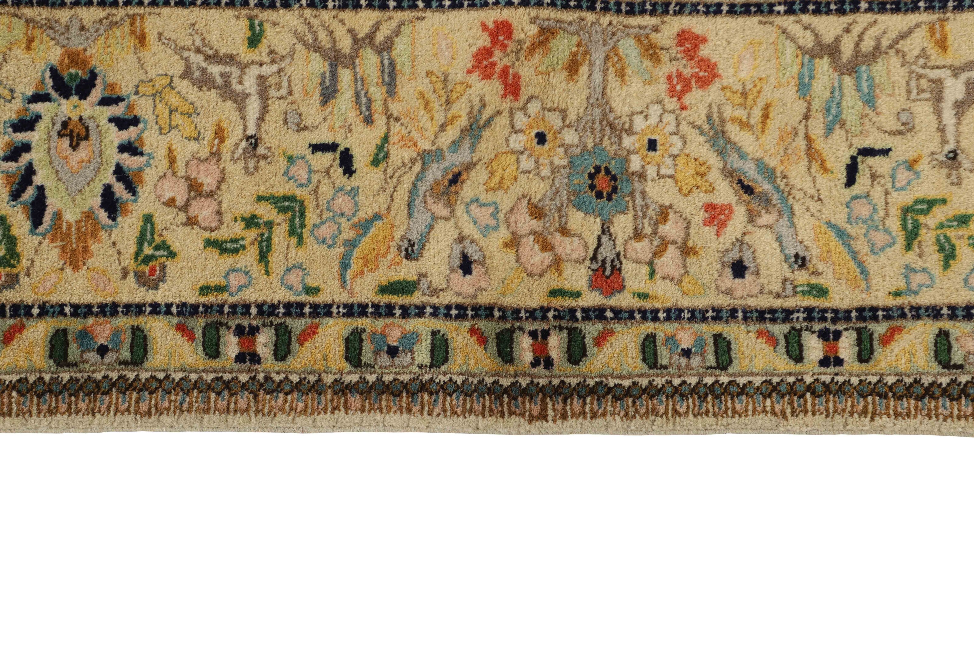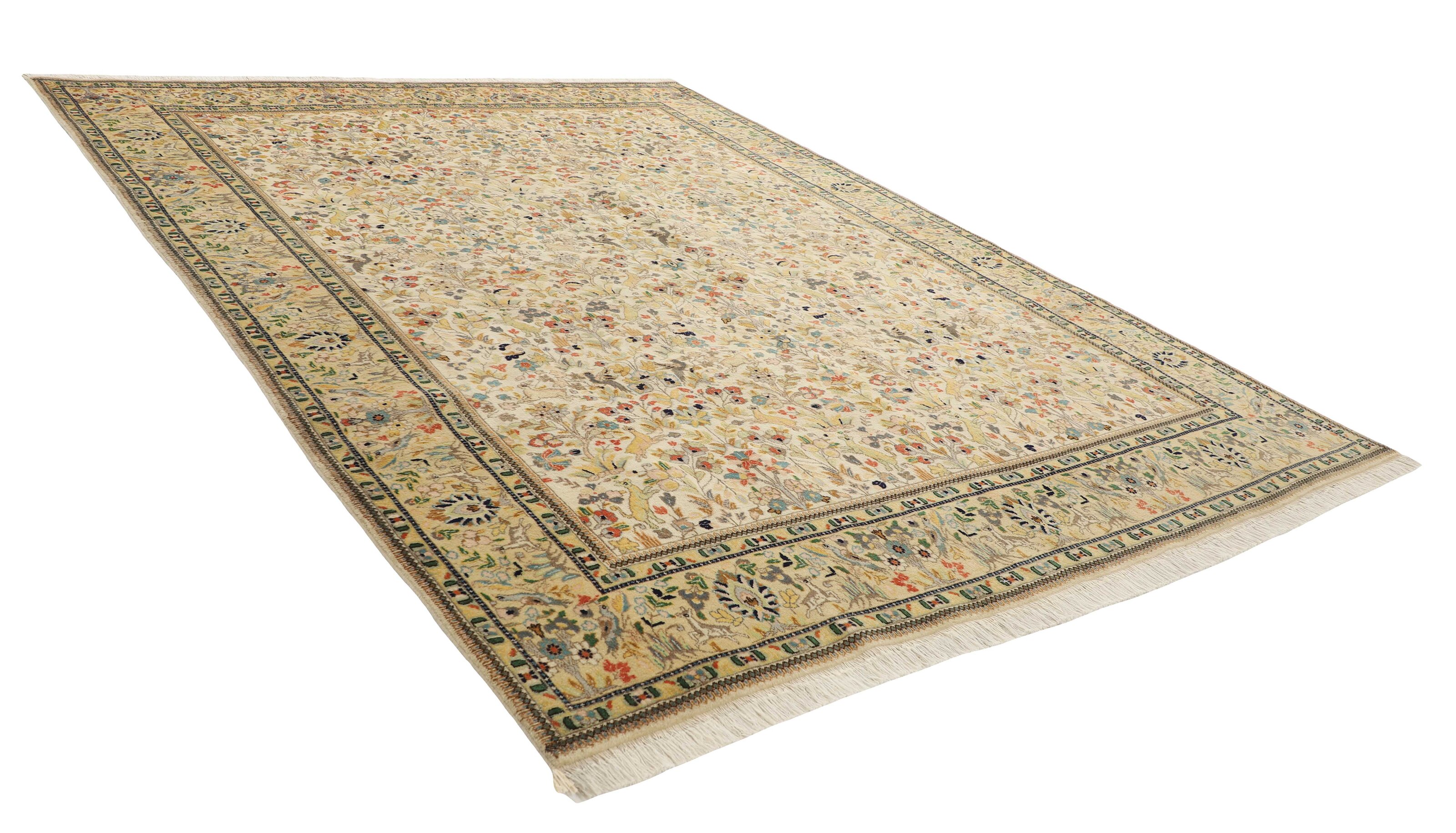 Tabriz 40Item no.: 1519735 Size: 263 cm x 343 cmTabriz is one of the most important cities in Iran. It has a population of 1,5 million people, and is the capitol of the East Azerbaijan province. As one of Persia’s biggest rug producing regions, Tabriz rugs are exported in all qualities, from the more simple to the most luxurious. The best qualities are divided into two main categories; the Tabriz Mahi, also known as “Tabriz fish pattern” (the rug’s leaf-shaped pattern is called Mahi, meaning “fish”), and the Tabriz Nagsheh, which means pattern. In this context, it refers to the figurative patterns and symbols from Keshan and Isfahan, which inspire the Tabriz Nagsheh rug. The knotters are incredibly skilled, and they have invented a special type of hook, which they can use instead of their fingers for knotting the knots. Warp and weft are cotton, and the pile is wool, often with silk woven into it in the finer qualities. The colours in the better rugs are fine and refined. The roughest qualities have bright colours and are rarely exported. Tabriz rugs are often given a number, such as Tabriz 50, which is an indication of quality. Tabriz 50 has 500.000 knots per m2. Rugs from Tabriz are regarded as being of a durable, very high quality.