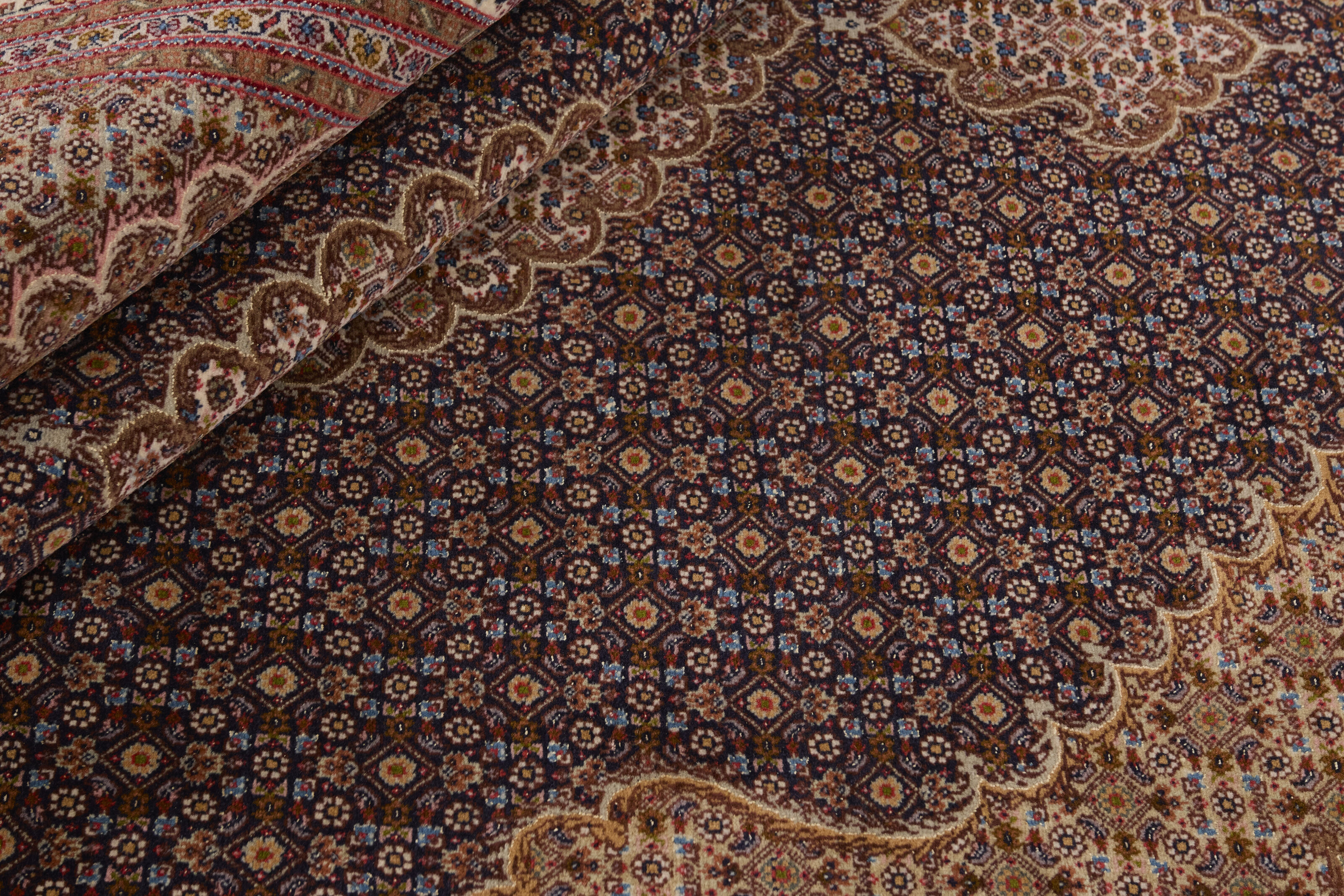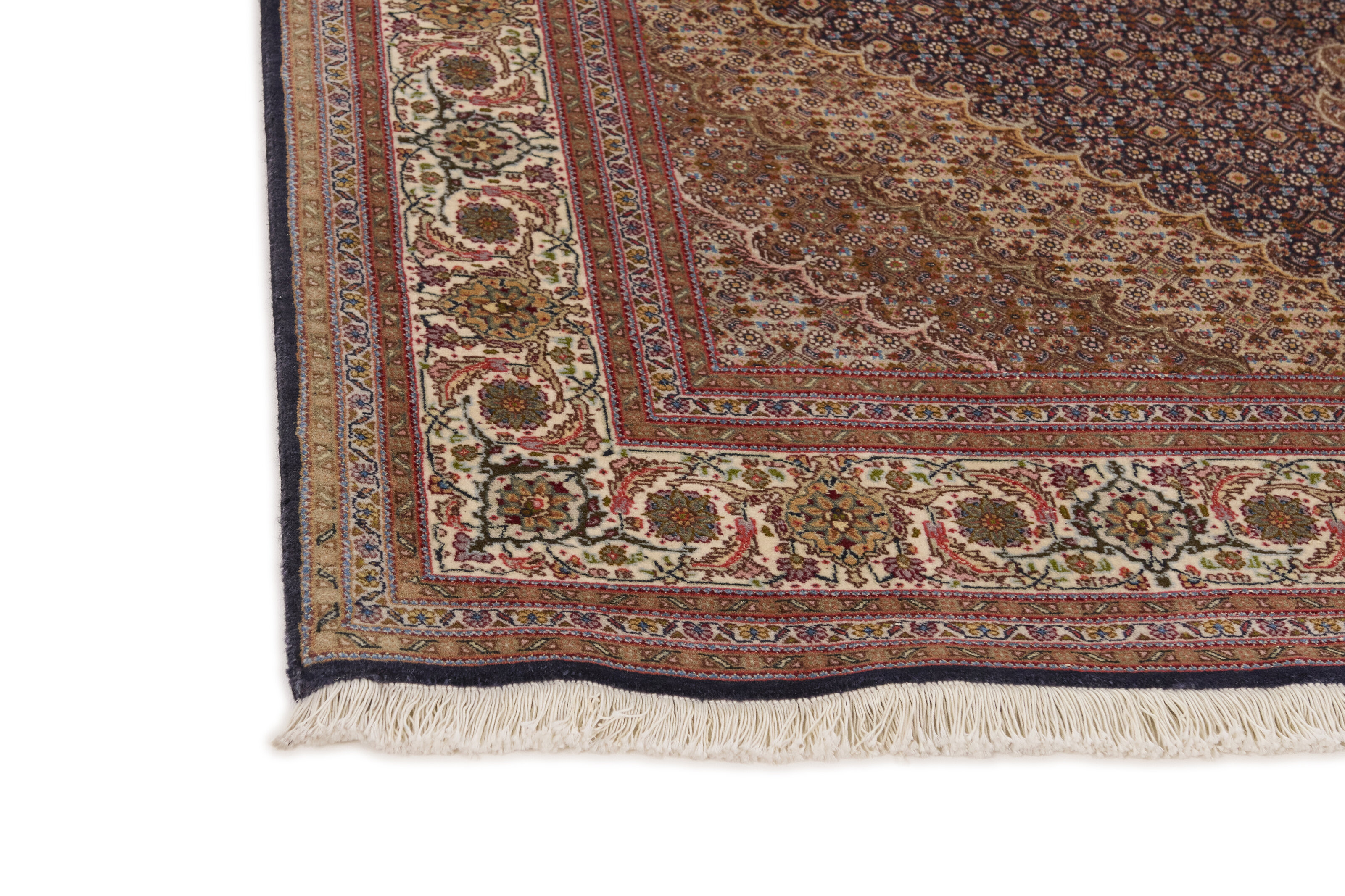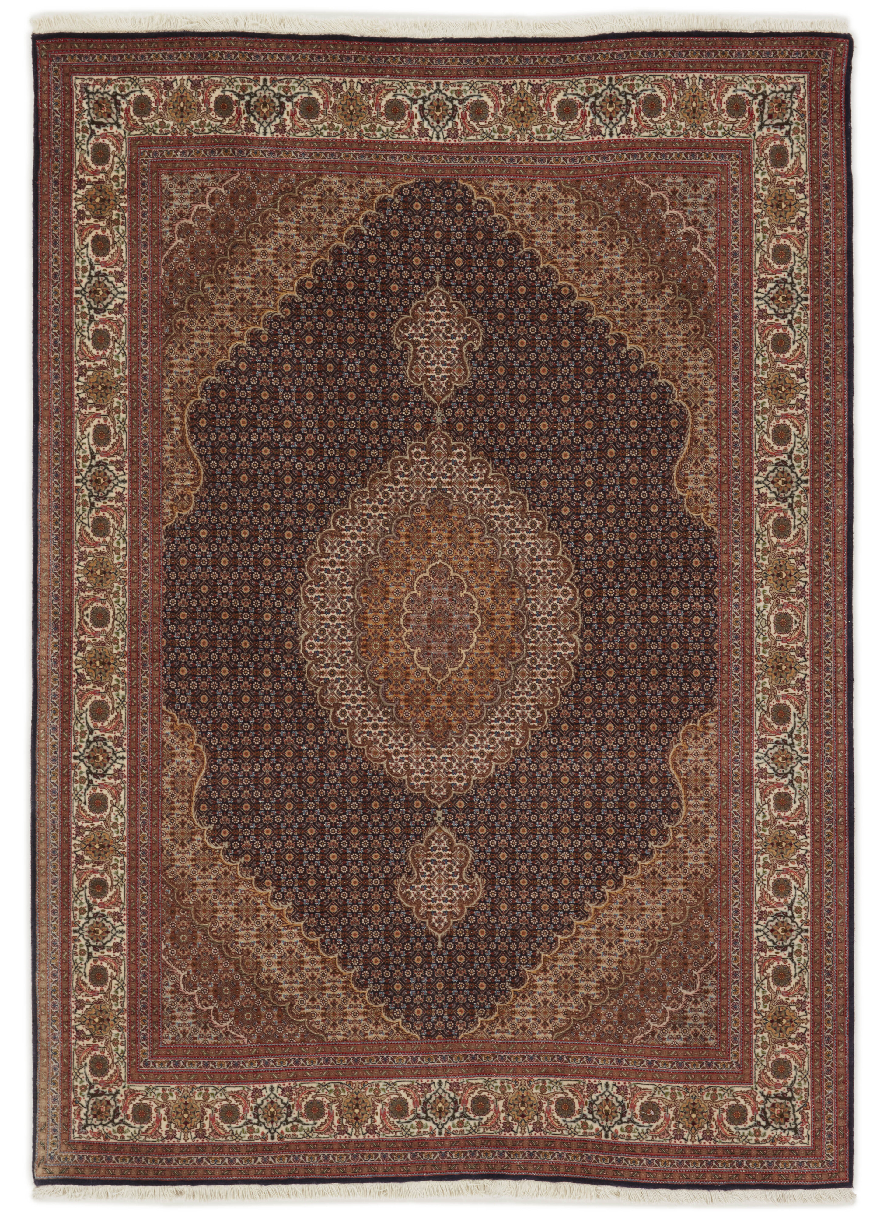 Tabriz 50 MahiItem no.: 1520422 Size: 173 cm x 242 cmTabriz is one of the most important cities in Iran. It has a population of 1,5 million people, and is the capitol of the East Azerbaijan province. As one of Persia’s biggest rug producing regions, Tabriz rugs are exported in all qualities, from the more simple to the most luxurious. The best qualities are divided into two main categories; the Tabriz Mahi, also known as “Tabriz fish pattern” (the rug’s leaf-shaped pattern is called Mahi, meaning “fish”), and the Tabriz Nagsheh, which means pattern. In this context, it refers to the figurative patterns and symbols from Keshan and Isfahan, which inspire the Tabriz Nagsheh rug. The knotters are incredibly skilled, and they have invented a special type of hook, which they can use instead of their fingers for knotting the knots. Warp and weft are cotton, and the pile is wool, often with silk woven into it in the finer qualities. The colours in the better rugs are fine and refined. The roughest qualities have bright colours and are rarely exported. Tabriz rugs are often given a number, such as Tabriz 50, which is an indication of quality. Tabriz 50 has 500.000 knots per m2. Rugs from Tabriz are regarded as being of a durable, very high quality.